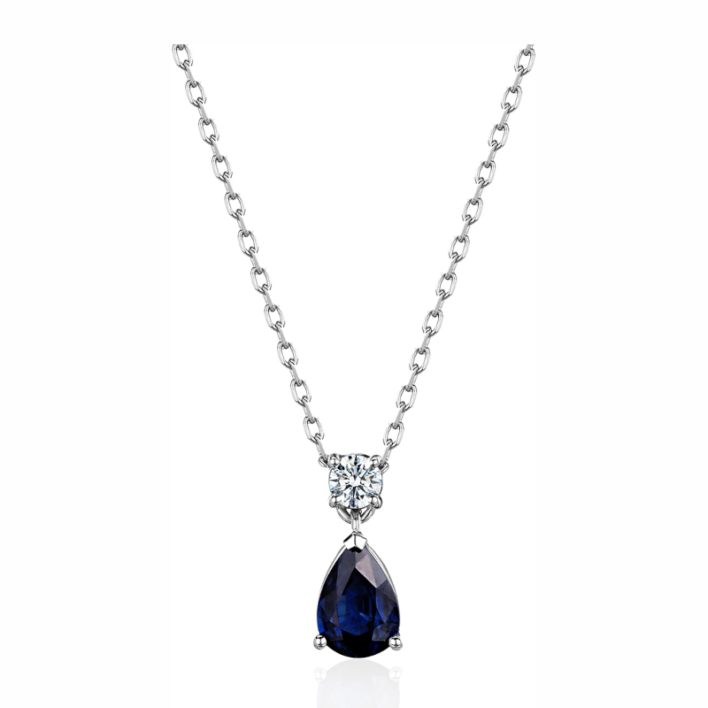 Колье из белого золота 750 пробы с сапфиром и бриллиантами 01Л672101-3
