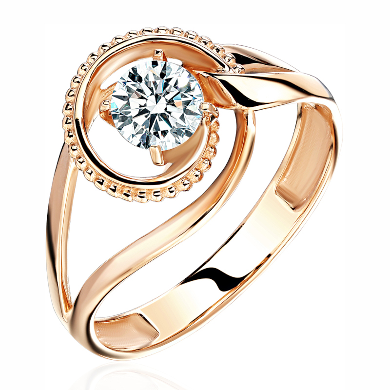 Кольцо из красного золота 585 пробы с фианитом 01К1114977