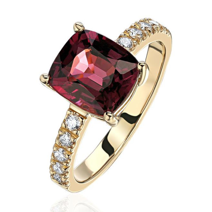 Кольцо из желтого золота 585 пробы с бриллиантами и шпинелью 01К6315304-2