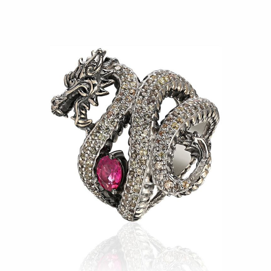 Кольцо из белого золота 750 пробы с рубином, сапфирами и бриллиантами 01К6715327-2