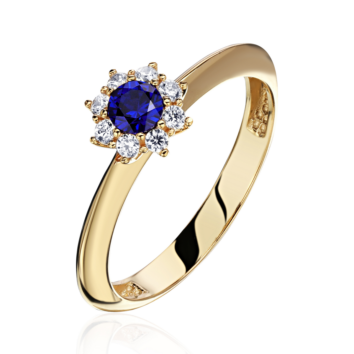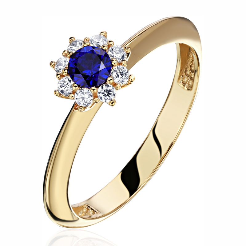 Кольцо из желтого золота 585 пробы с сапфиром и фианитами 01К2315729-1