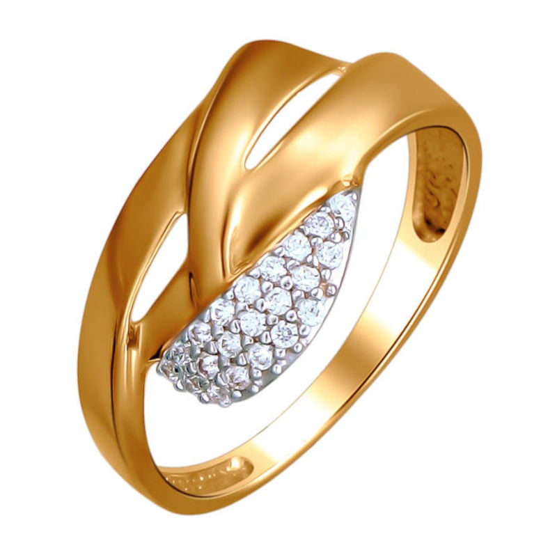 Кольцо из красного золота 585 пробы с фианитами. Сегодня сочетание золота и фианита уже считается классикой. Роскошный блеск фианита привлекает взгляды, а оригинальный дизайн вносит в образ нотку элегантности. Самые смелые решения дизайнеров воплощаются в современных украшениях.