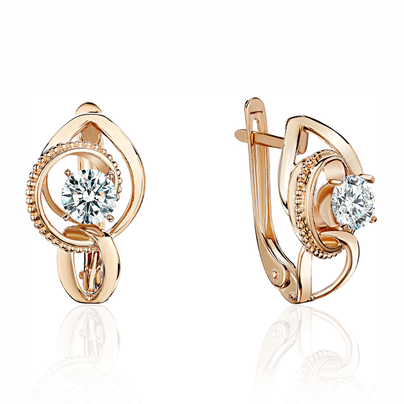 Серьги из красного золота 585 пробы с фианитами 01С1114977