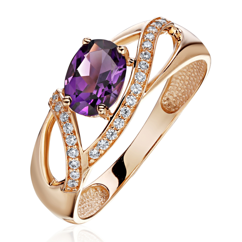 Кольцо из красного золота 585 пробы с аметистом и фианитами 01К3115351-2