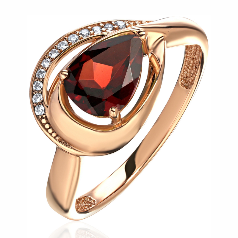 Кольцо из красного золота 585 пробы с гранатом и фианитами 01К3115348-3