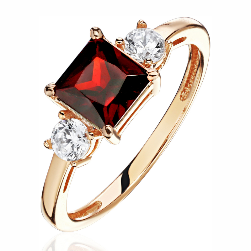 Кольцо из красного золота 585 пробы с гранатом и фианитами 01К3115366-3