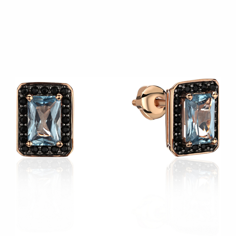 Серьги из красного золота 585 пробы с фианитами и шпинелью 01С2114887ЧР-1