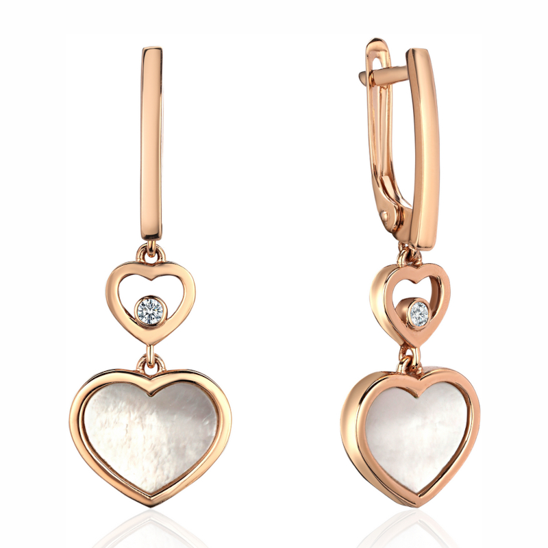 Серьги из красного золота 585 пробы с фианитами и перламутром 01С4115094-1