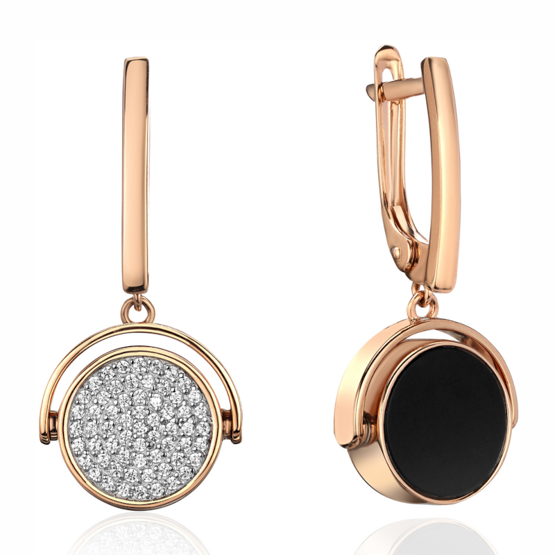 Серьги из красного золота 585 пробы с агатами и фианитами 01С4115070-1