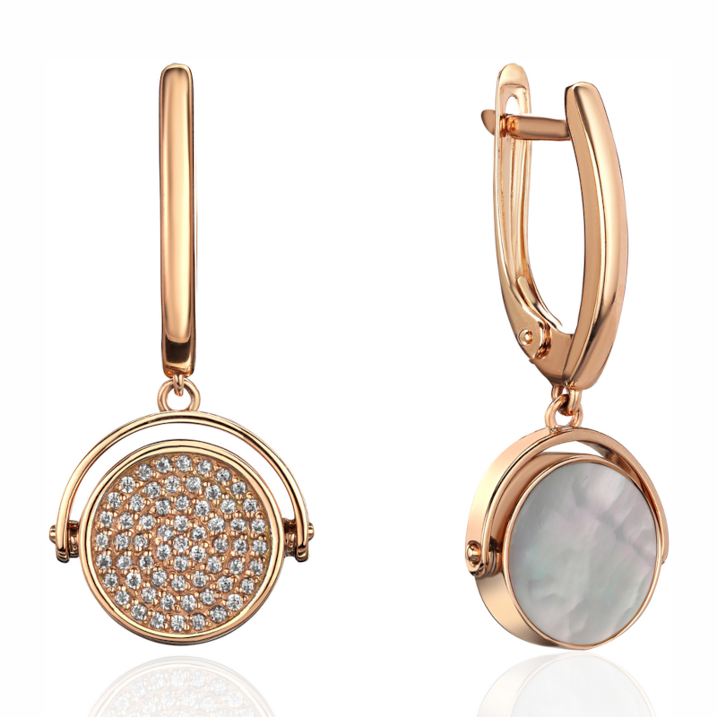 Серьги из красного золота 585 пробы с фианитами и перламутром 01С4116170-2