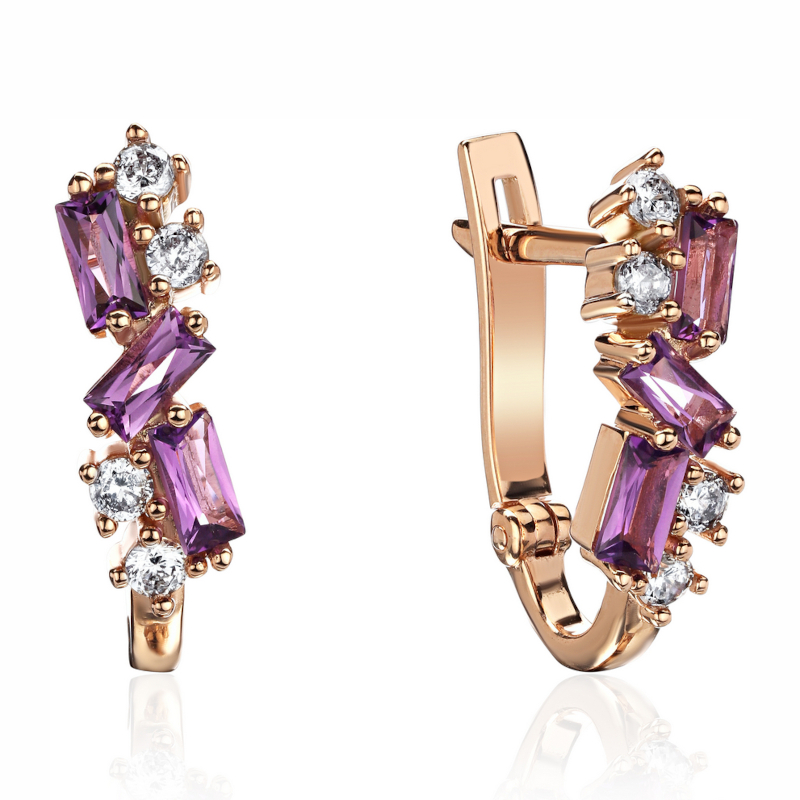 Серьги из красного золота 585 пробы с аметистами и фианитами 01С2115976-1
