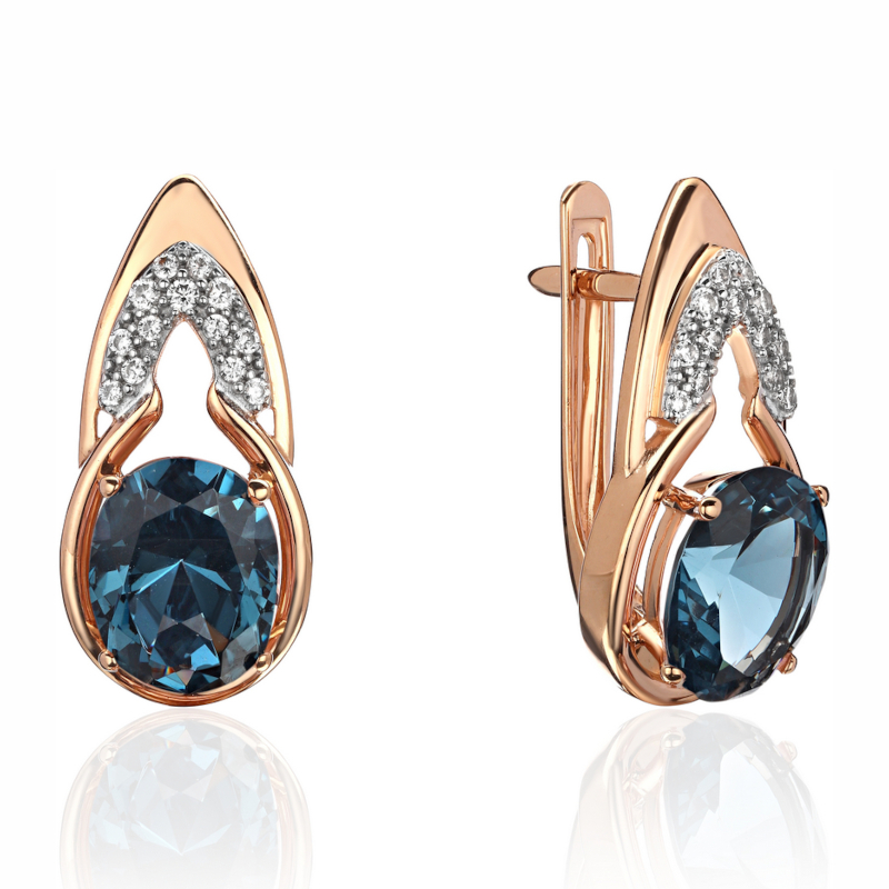 Серьги из красного золота 585 пробы с наноситал топазом и фианитами 01С2115347-2