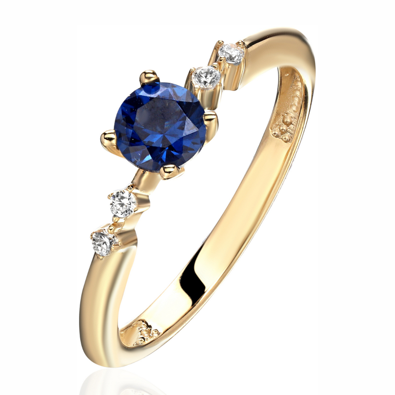 Кольцо из желтого золота 585 пробы с наносапфиром и фианитами 01К2314630-1