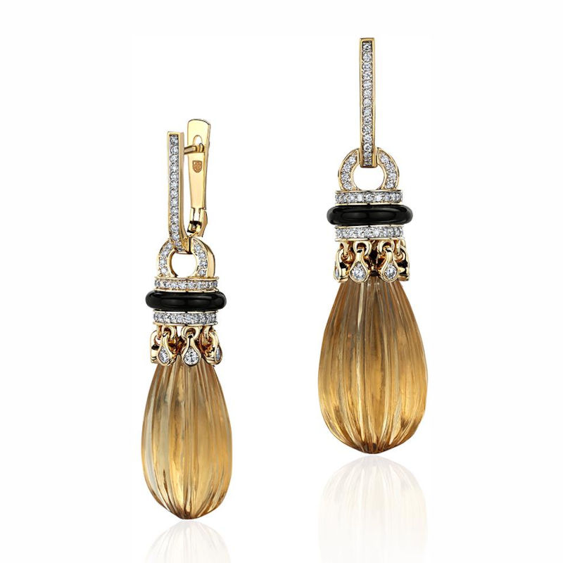 Серьги из желтого золота 585 пробы с бриллиантами, агатами и цитринами 01С6311803-12
