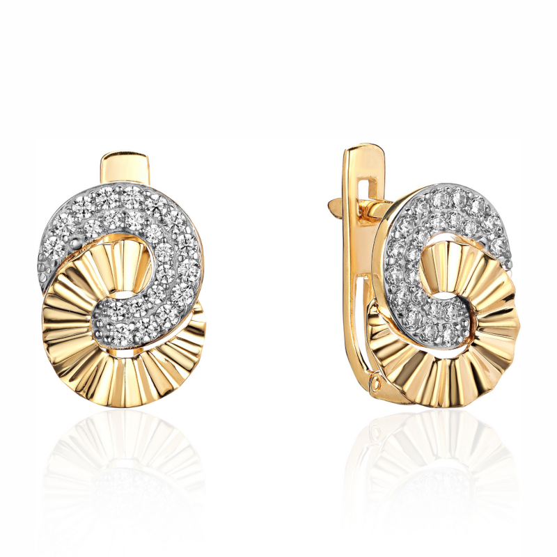 Серьги из желтого золота 585 пробы с фианитами 01С1314770Р