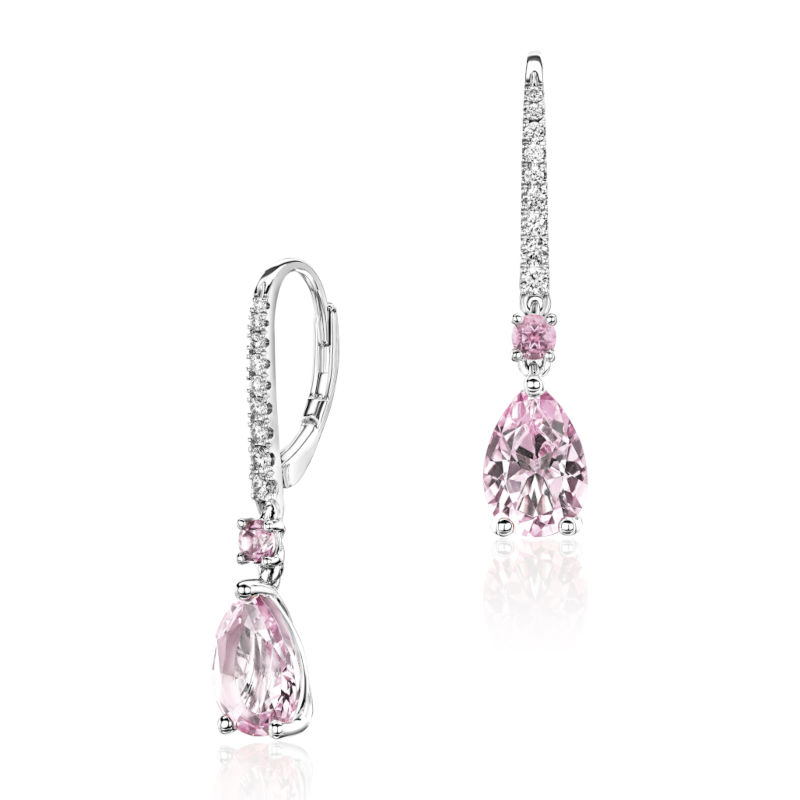 Серьги из белого золота 585 пробы с сапфирами, кунцитами и бриллиантами 01С6216607-2