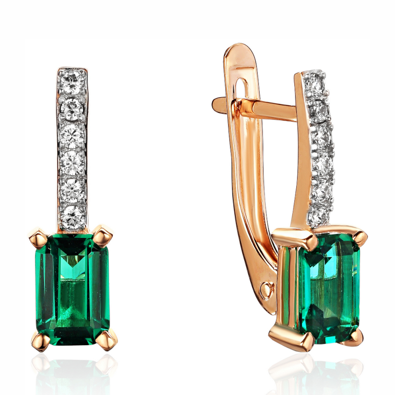 Серьги из красного золота 585 пробы с наноизумрудами и фианитами 01С2114886ЧР-1