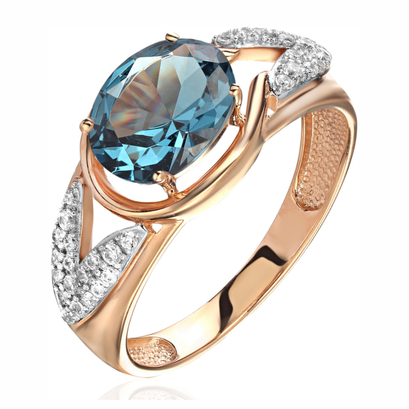 Кольцо из красного золота 585 пробы с наноситал топазом и фианитами 01К2115347-2