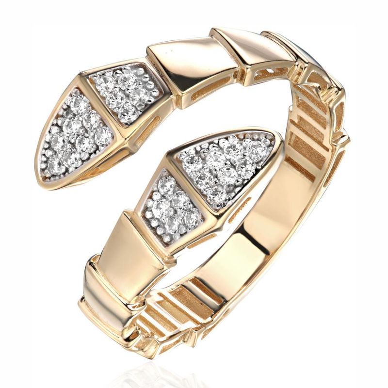 Кольцо из желтого золота 585 пробы с фианитами из коллекции Serpenti создано для тех, кто ценит утонченную элегантность и глубокий символизм. Желтое золото обладает тёплым, насыщенным блеском, подчёркивающим достоинства ювелирного изделия и придающим ему особый шарм. Надёжное и прочное, оно прекрасно подчеркивает красоту фианитов, обеспечивающих яркий и искрящийся блеск, словно живое пламя, освещающее каждый ваш образ.