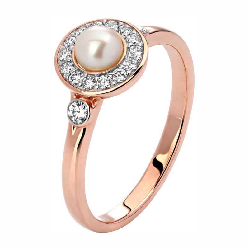 Кольцо из красного золота 585 пробы с фианитами и жемчугом 01К3112641-1