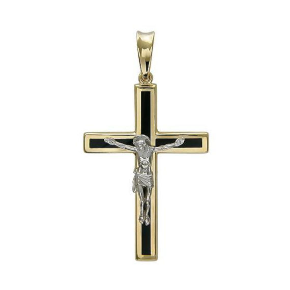 Крест нательный из двух цветов золота 585 пробы с агатами 01Р460872Ж-1