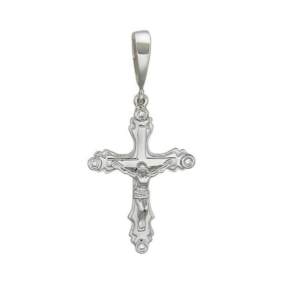 Крест нательный из белого золота 585 пробы с бриллиантами 01Р620607