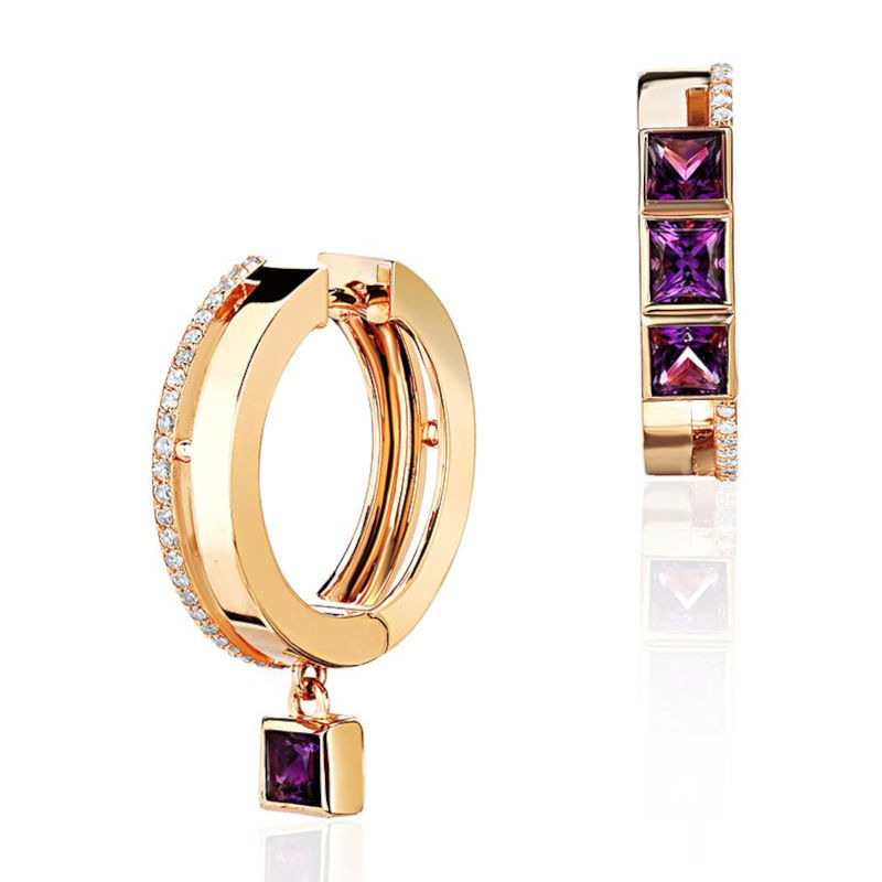 Серьги из красного золота 585 пробы с аметистами и бриллиантами 01С6115454-1