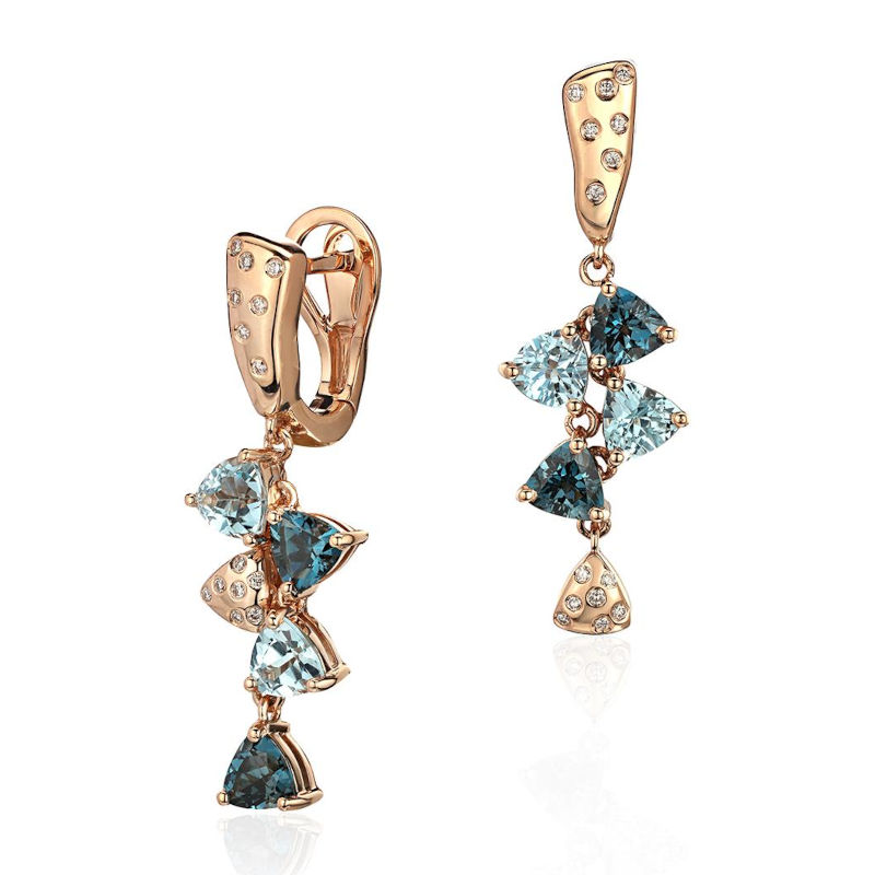 Серьги из красного золота 585 пробы с топазами и бриллиантами 01С6115455-2