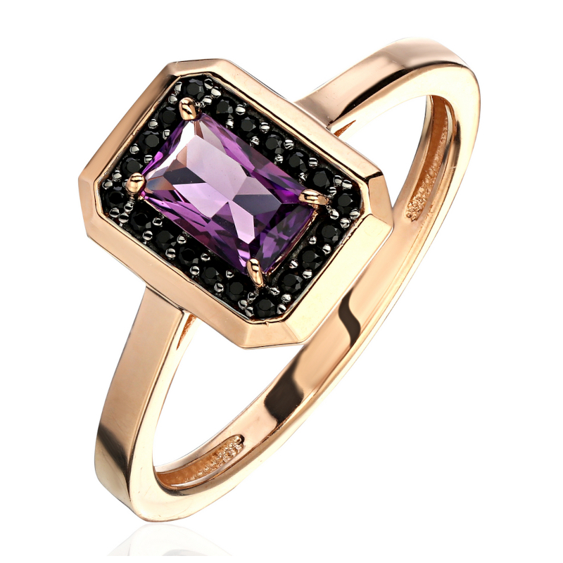 Кольцо из красного золота 585 пробы с аметистом и наношпинелью 01К2115984ЧР-2