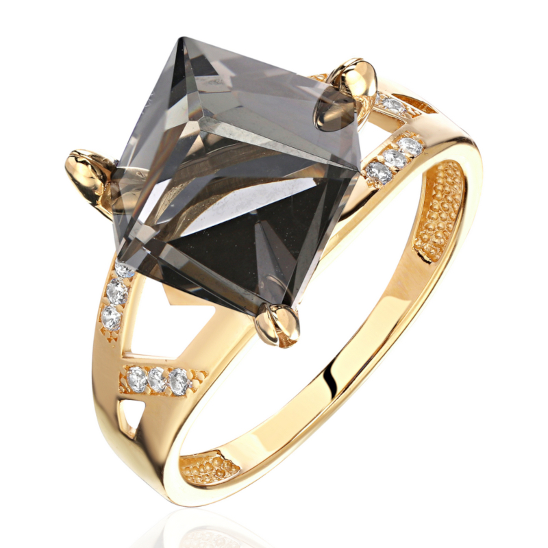 Кольцо из красного золота 585 пробы с наноситал кварцем и фианитами 01К2315258-2