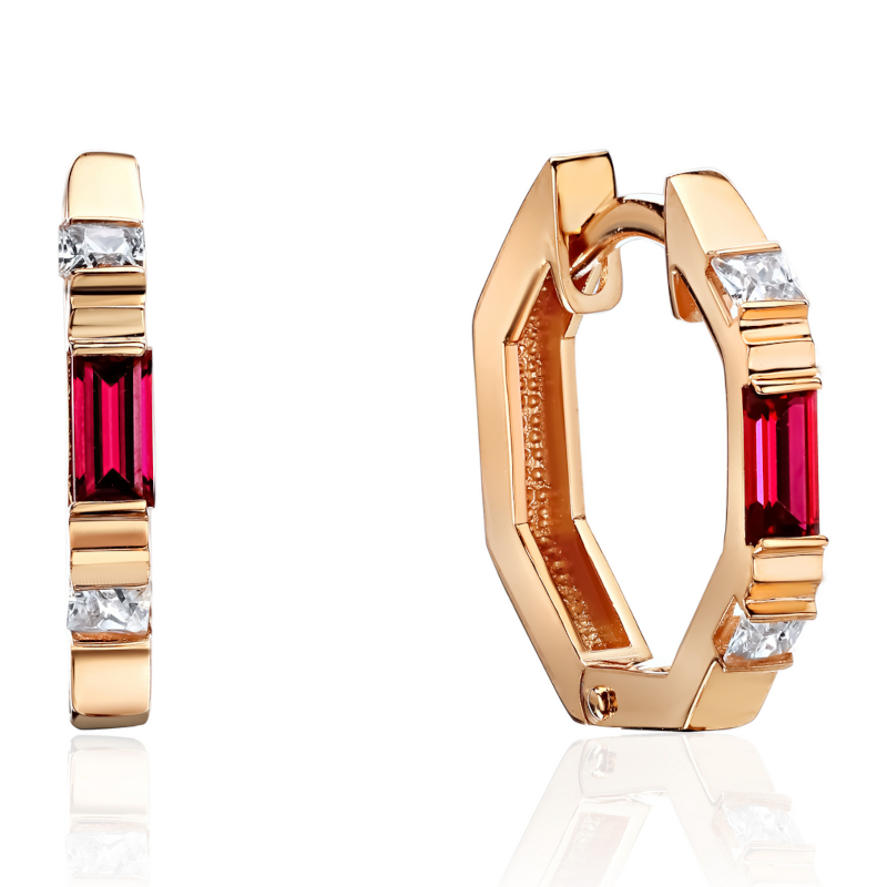 Серьги из красного золота 585 пробы с гранатами и фианитами 01С2115216-1