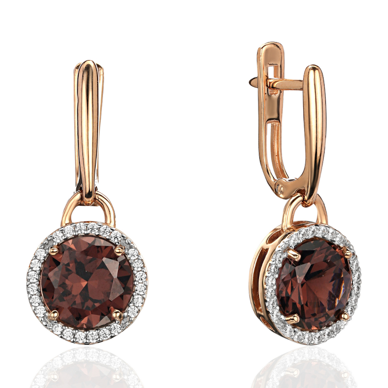 Серьги из красного золота 585 пробы с наноситал турмалином и фианитами 01С2115335-1