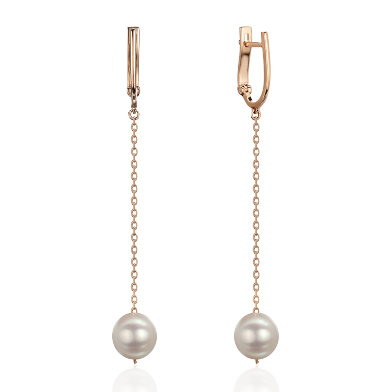 Серьги из красного золота 585 пробы с жемчугом 01С318338-2