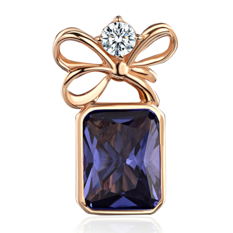 Подвеска из красного золота 585 пробы с наноситалом танзанитом и фианитом 01П2115468-1 отличается утонченной элегантностью и универсальностью. Ее дизайн выполнен в форме "подарка": центральный камень размером 8х6 мм напоминает аккуратную "коробочку", которая символизирует особенные моменты и желания.
