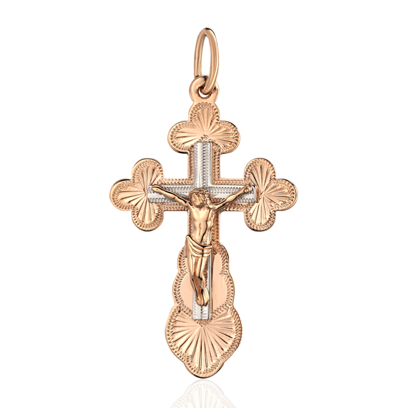 Крест нательный из двух цветов золота 585 пробы без вставок 01Р760539