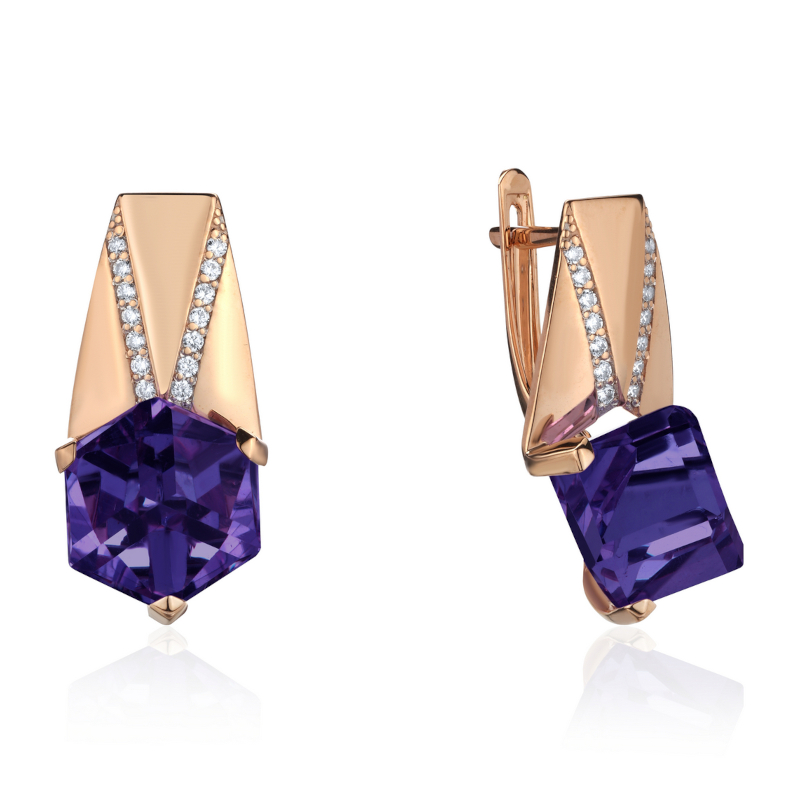 Серьги из красного золота 585 пробы с наноситал танзанитом и фианитами 01С2115259-4