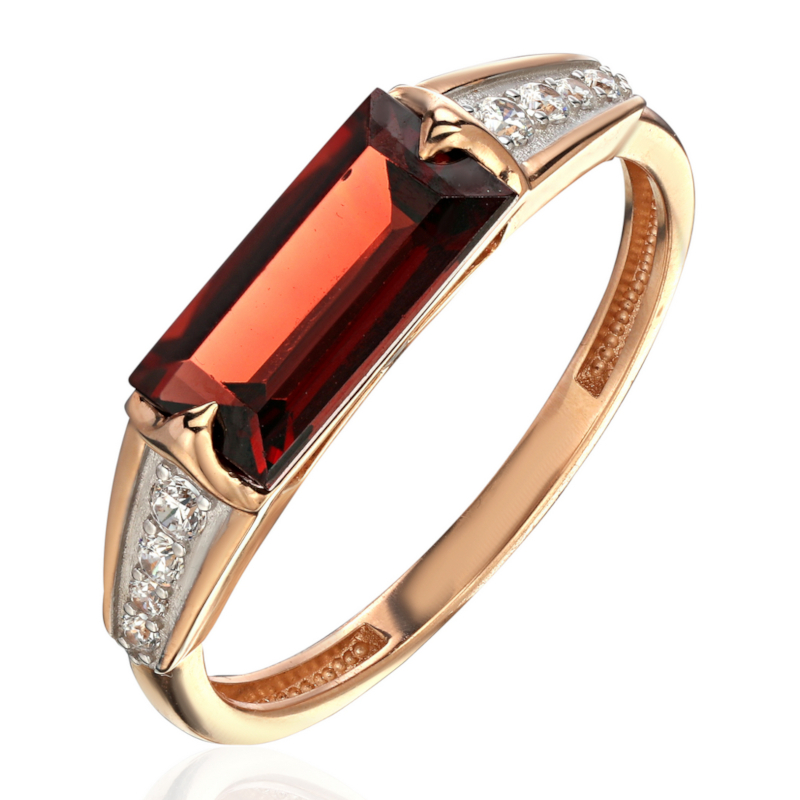 Кольцо из красного золота 585 пробы с гранатом и фианитами 01К3115466Р-2