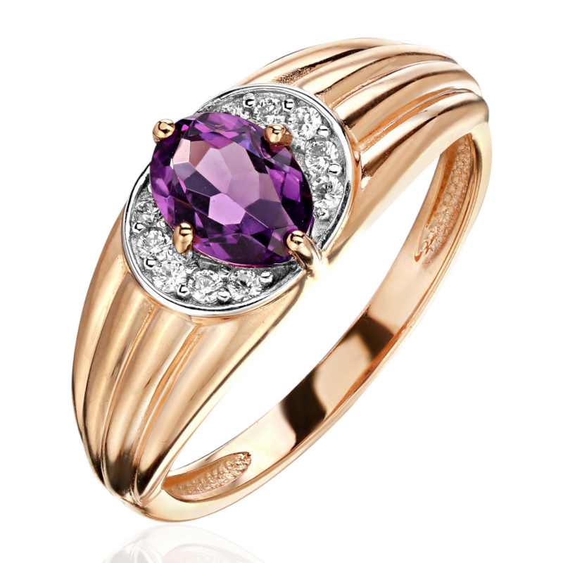 Кольцо из красного золота 585 пробы с аметистом и фианитами 01К3115372Р-1