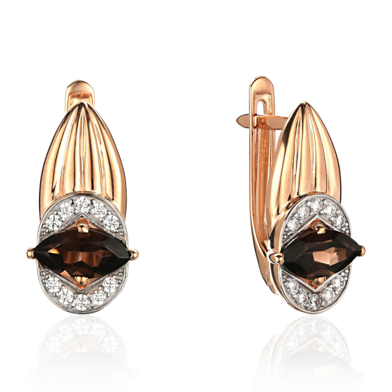 Серьги из красного золота 585 пробы с раух-топазами и фианитами 01С3115372Р-3