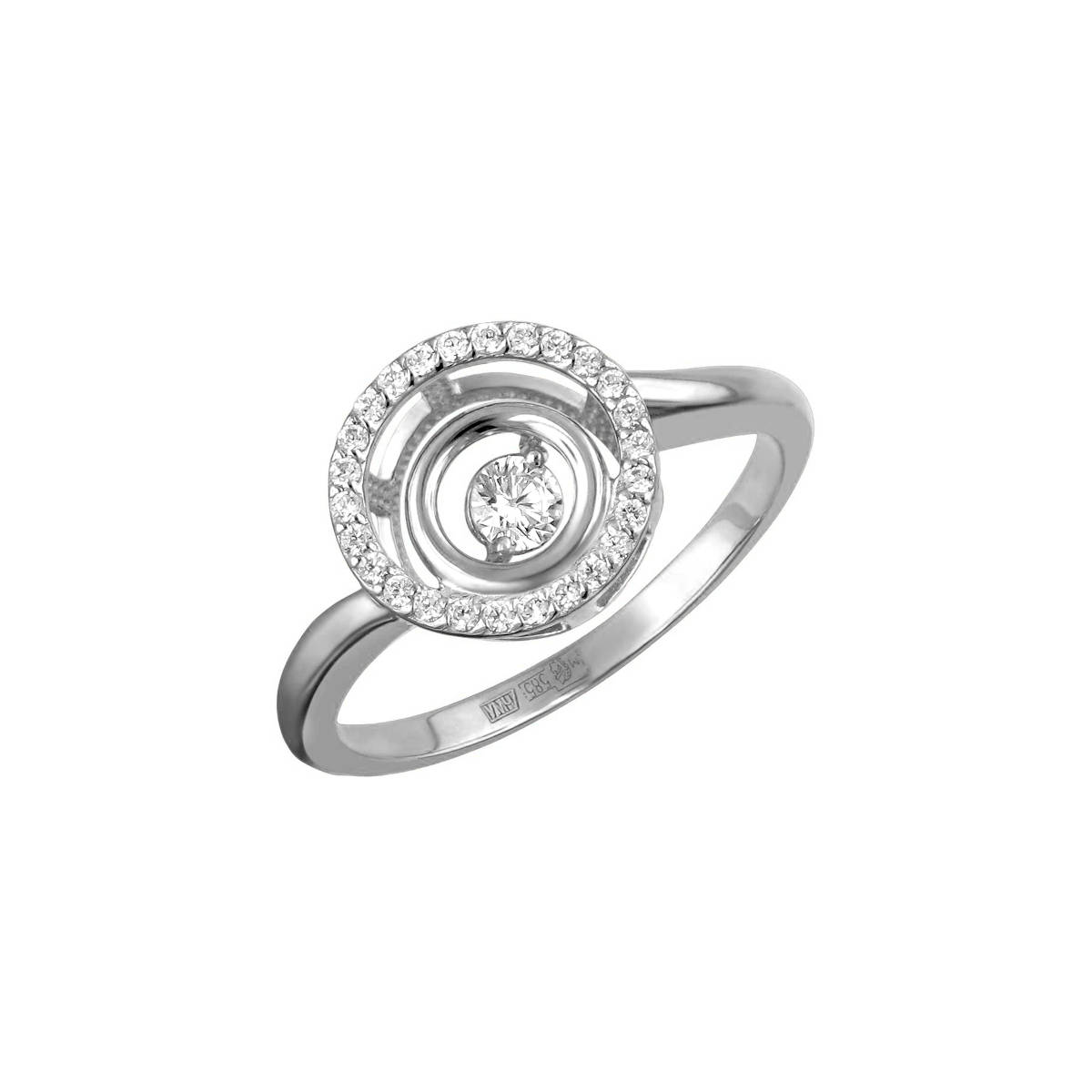 Кольцо из белого золота 585 пробы с танцующим фианитом из коллекции Impulse. Уникальная закрепка в украшениях Impulse, пожалуй, прорыв во множестве традиционных вариантов закрепки камней. Точно выверенный баланс создан с таким расчетом, чтобы вставка приходила в движение, не переворачиваясь. Качания камня визуально ассоциируются с танцем. Лучи света каждый раз отражаются от разных граней вставки, превращаясь в радужные вспышки света. Это волшебство отражает всю красоту женщины.