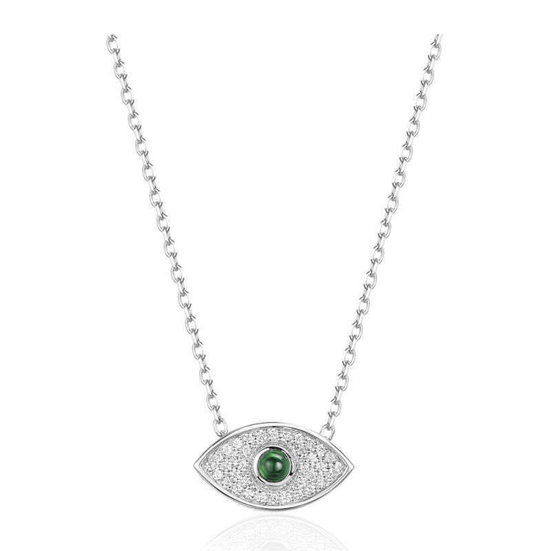 Колье из белого золота 585 пробы с изумрудом и бриллиантами 01Л622157-3