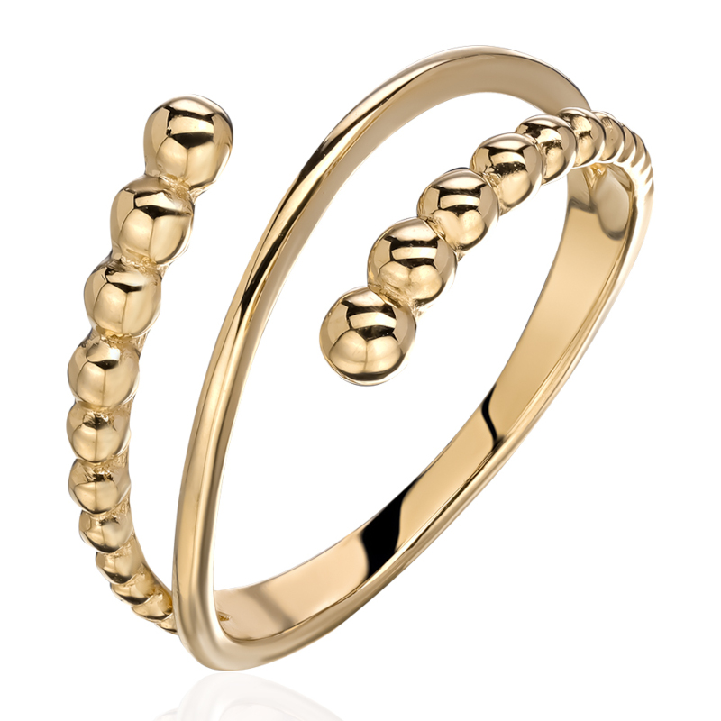 Кольцо из желтого золота 585 пробы без вставок из коллекции Bubbles — это гармоничное сочетание изящества и легкости. Легкий дизайн и воздушные формы создают ощущение невесомости, что делает украшение особенно привлекательным и комфортным для ежедневного ношения. Благодаря лаконичной форме и минимализму, оно легко сочетается с разными стилями и подходит как для повседневных, так и для торжественных образов.