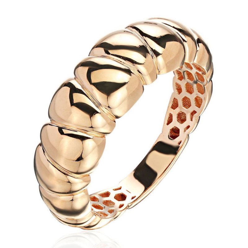 Кольцо из красного золота 585 пробы без вставок из коллекции "БЕЗЕ" выполнено в современном стиле с акцентом на объем и стиль. Это украшение подчеркивает актуальность крупной, выразительной формы и воздушности, характерных для новейших трендов ювелирной индустрии. Коллекция "БЕЗЕ" объединяет объемные и стильные украшения, созданные с использованием инновационных технологий ювелирного дома Estet, что позволило добиться больших, ярко выраженных форм при минимальной массе изделия. Элементы коллекции вдохновлены итальянской ювелирной эстетикой, проявляющейся в детализации и проработке каждой детали, даже внутри кольца легко заметить изящное сетчатое орнаментальное наполнение, придающее изделию особый шарм.