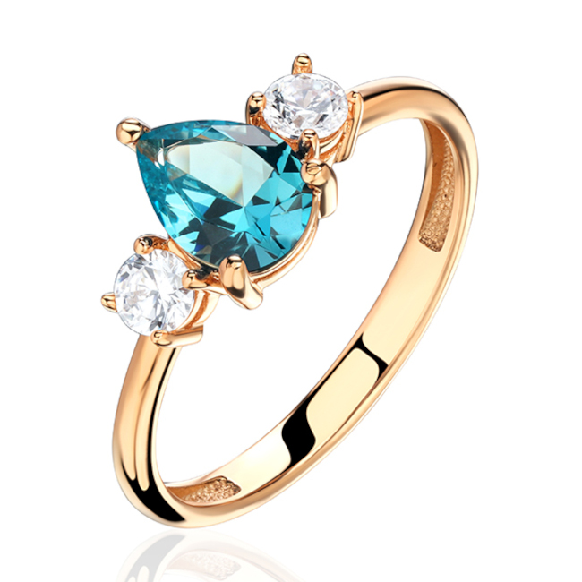 Кольцо из красного золота 585 пробы с наноситал турмалином и фианитами 01К2115337-5
