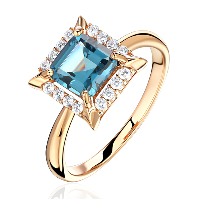 Кольцо из красного золота 585 пробы с наноситал топазом и фианитами — изящное украшение для тех, кто ценит яркость и элегантность. Голубой топаз — символ спокойствия, мудрости и внутренней гармонии. Его насыщенный цвет ассоциируется с небом и морем, наполняя образ свежестью и вдохновением. В сочетании с искрящимися фианитами это изделие приобретает особую воздушность и деликатность. Коллекция "New colour" наполнена современными оттенками и стильными решениями, подчеркивающими индивидуальность каждого владельца. Кольцо выполнено с вниманием к деталям, и гармонично сочетает классические элементы с актуальными трендами моды.