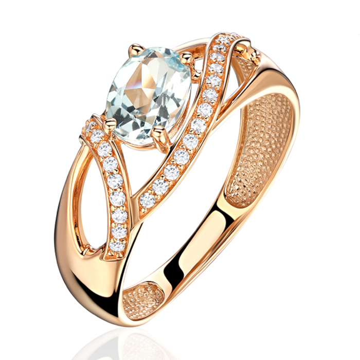 Кольцо из красного золота 585 пробы с топазом и фианитами 01К3115351-1