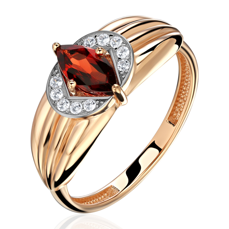 Кольцо из красного золота 585 пробы с гранатом и фианитами 01К3115372Р-4