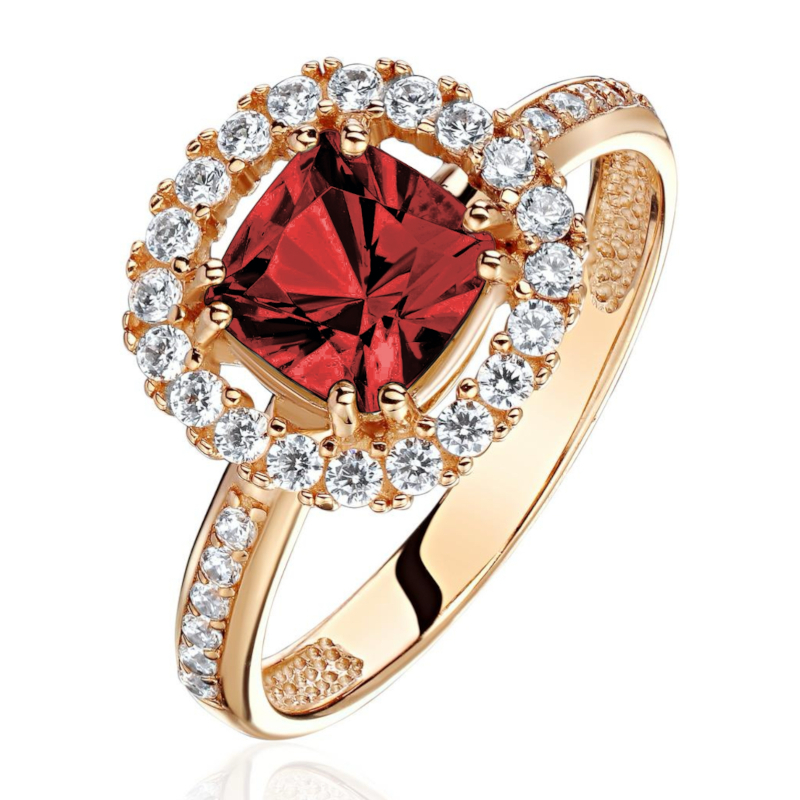 Кольцо из красного золота 585 пробы с гранатом и фианитами 01К3115438-4