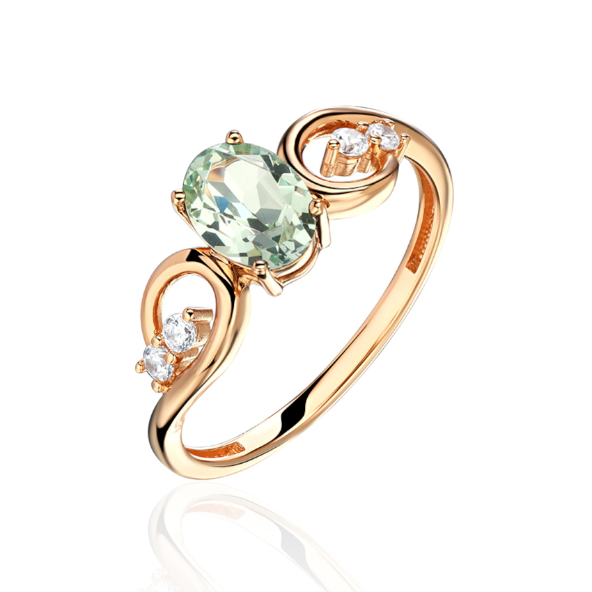 Кольцо из красного золота 585 пробы с наноситал кварцем и фианитами 01К2115339-5