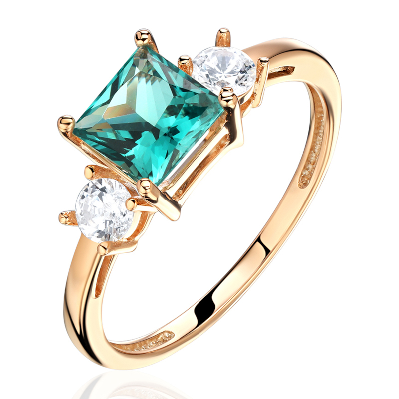 Кольцо из красного золота 585 пробы с наноситал турмалином и фианитами 01К2116466-2